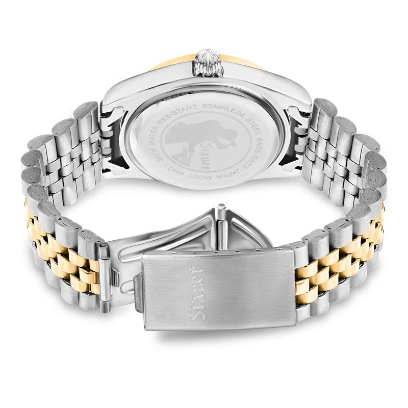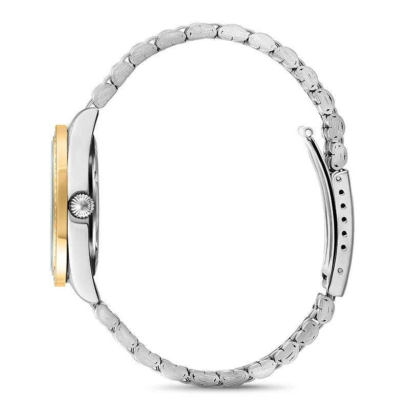 - Yellow gold-finished two tonedface and band