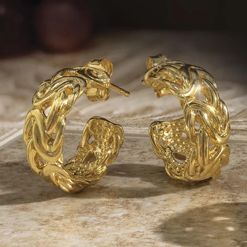 For a time, it seemed that nothing was outside the grasp of the Byzantine Empire. After all, for more than 1,000 years it was the most powerful cultural, economic and military force in Europe. And by pulling from the great traditions of its dominion, Byzantine jewelers reached new heights in craftsmanship, creating some of the most opulent and ornate jewelry the world has ever seen. With an abundance of gold sourced from the empire’s numerous mines, jewelry became as common to daily dress as wearing shoes. To celebrate this era of opulence, we’ve asked the best craftsmen in Italy to shape the Eterno Byzantine Collection. This fashionable ring and earring set intertwines .925 sterling silver with a yellow gold finish. The intricate metalwork seen here is Italian Byzantine design at its best; since it debuted all those centuries ago, it’s never gone out of style. See why “eterno” means “eternal” in Italian. Get the Eterno Byzantine Collection today!