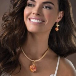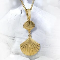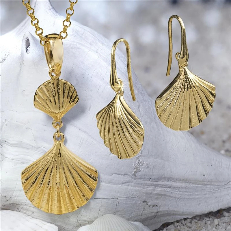 Take our Golden Shell Pendant, Chain and Earrings, jewelry crafted in Italy from .925 sterling silver that’s finished with yellow gold and embracesÂ