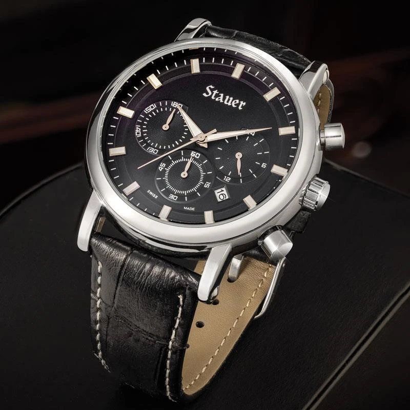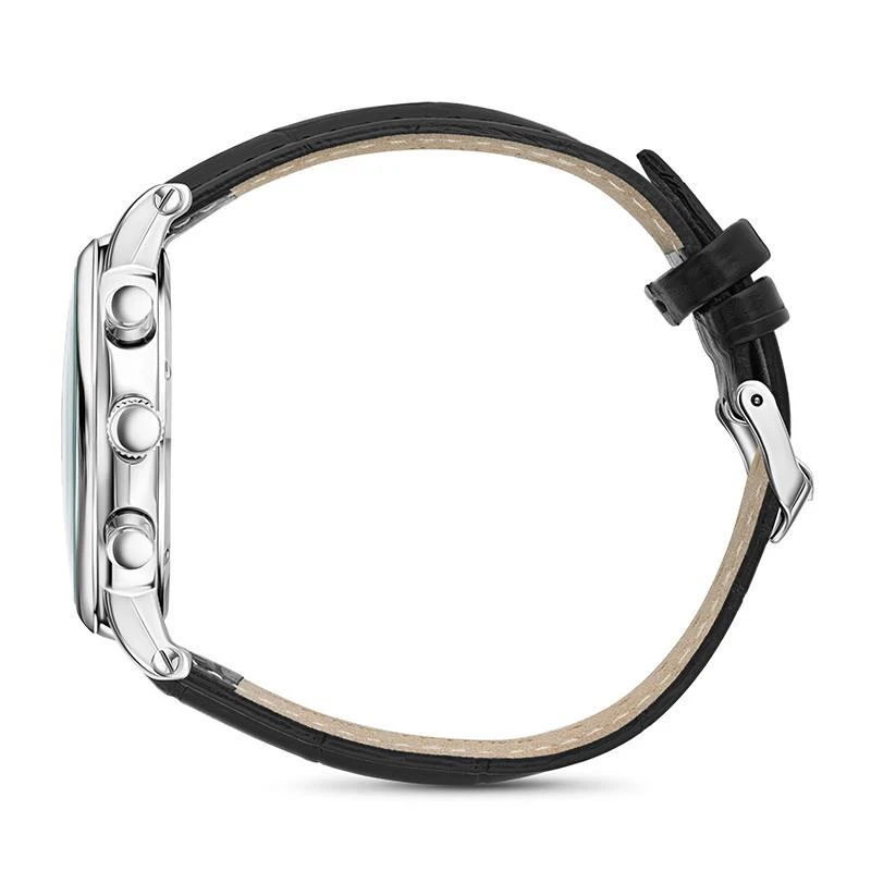 This sturdy chronograph has a precision movement that oscillates an incredible 32,768 times per second. With a 24-hour dial, 60-second dial, 60-minute dial and a date window, this timekeeper will help you stay on top of whatever your travels throw at you.