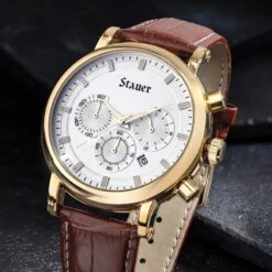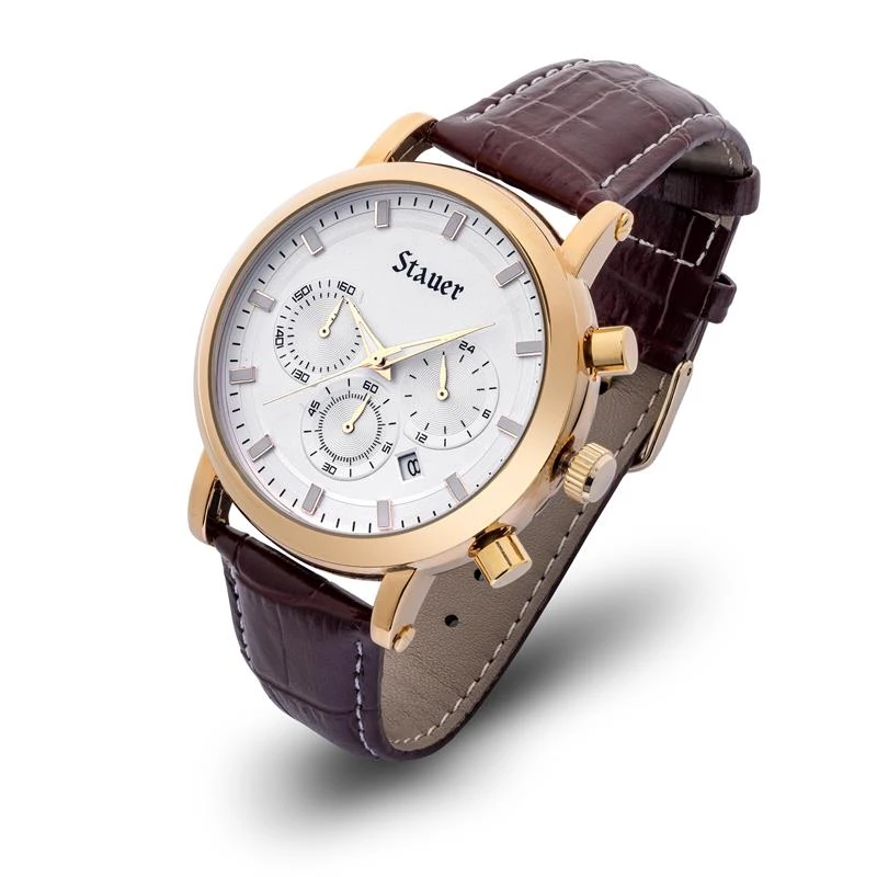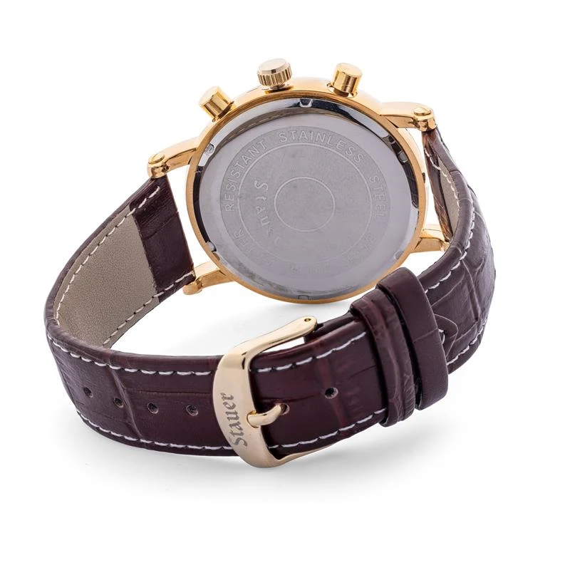This sturdy chronograph has a precision movement that oscillates an incredible 32,768 times per second. With a 24-hour dial, 60-second dial, 60-minute dial and a date window, this timekeeper will help you stay on top of whatever your travels throw at you.