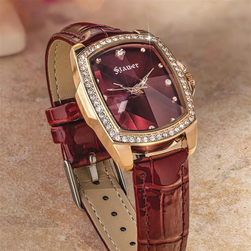 We say, it’s always time for some red-hot love. That’s why we’ve crafted our Ladies Rouge Watch. Featuring a crimson leather band with a matching watch face and a cushion case with crystal detail, this little number is both sleek and satisfying, conveying the refined strength of red in a decidedly feminine package. It features a precision movement, and, at this price, it’s also an incredible steal.