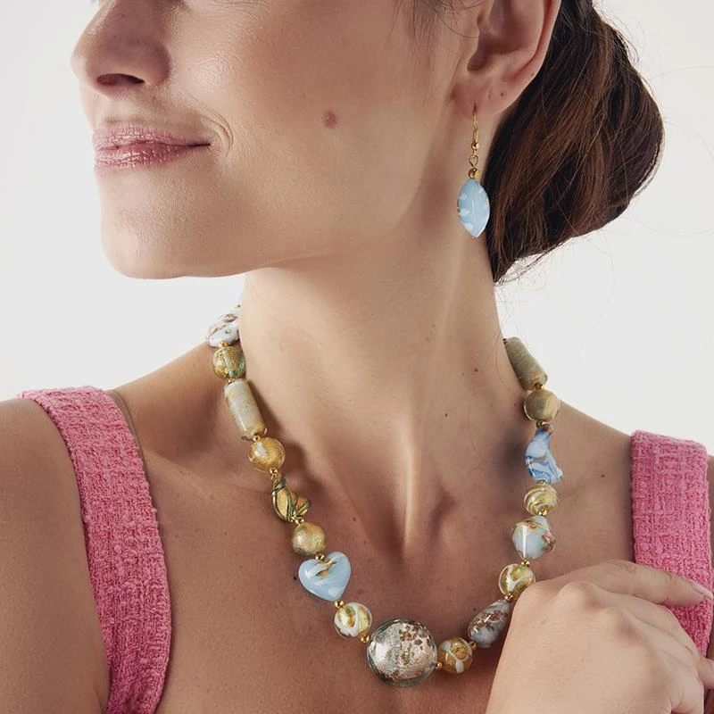 Those techniques are on full display in our Laguna d’Oro Murano Earrings, jewelry inspired by the watery lagoon and the shining city that made it famous. Beads glisten in gold and aqua hues amidst yellow gold-finished settings. Together, they’re an eye-catching tribute to Italy’s national treasure, and the next best thing to booking a gondola ride at sunset.