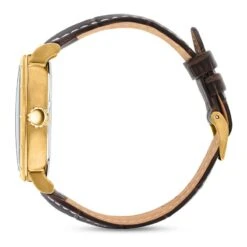 - Gold-finished stainless steel case with stainless steel case back