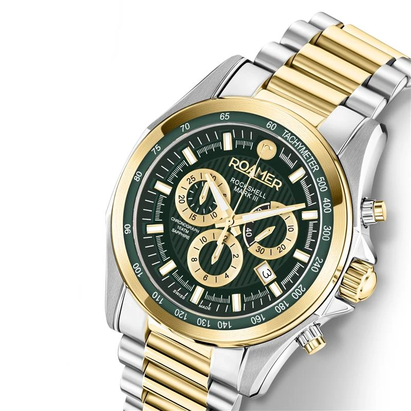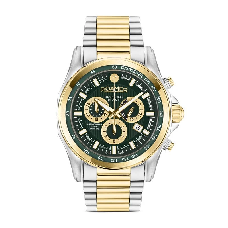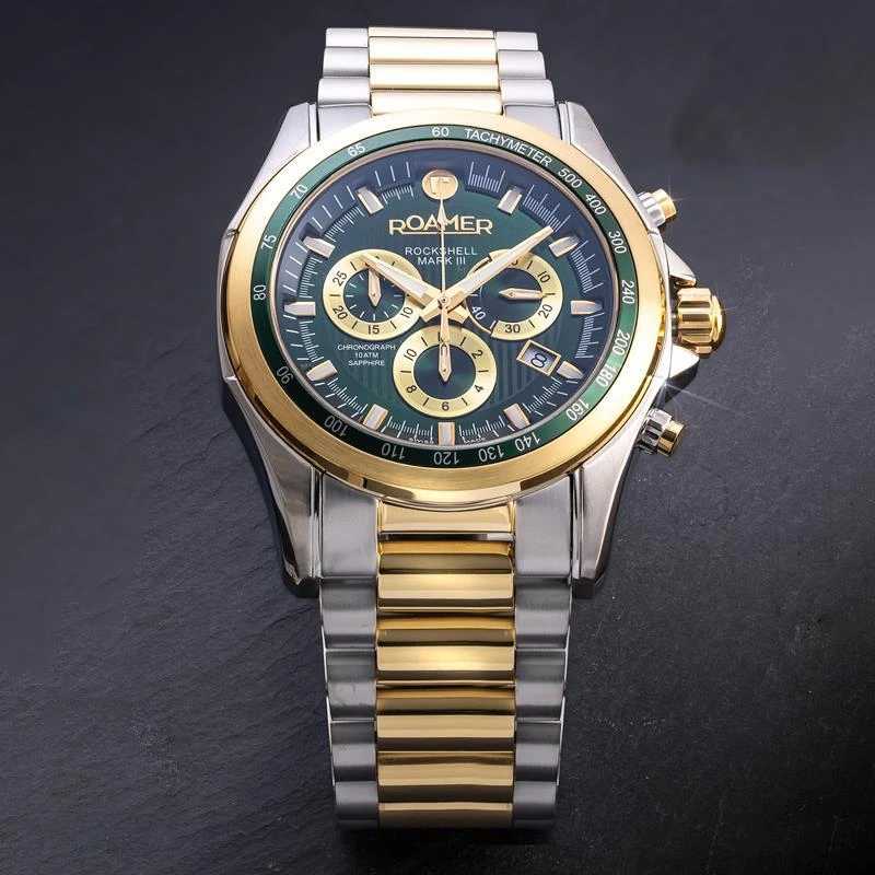 The Swiss Alpine Men’s Chronograph is a breath of fresh air with its durable stainless steel construction and precision Swiss Ronda movement from a company that’s been making them for generations. The Swiss Alpine’s complications include a three-dial stopwatch with a classic center-stop function as well as a date window at 4 o’clock.Â