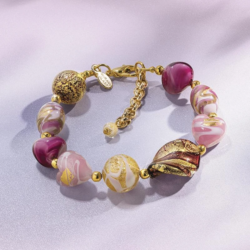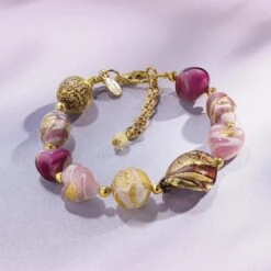 At Stauer, we have a deep appreciation for the art of curation, and that living rose museum inspired myself and Daniele to curate a collection of our own in its honor. The Rosa Murano Bracelet is a fairytale made from authentic Murano glass. Formed in large, rosy beads by skilled artisans, this set showcases swirls of gold foil suspended in colored glass in shades of pink and gold. Combined with yellow gold-finished settings, they’re a fitting tribute to the “queen of flowers” — or to the rose in your life.