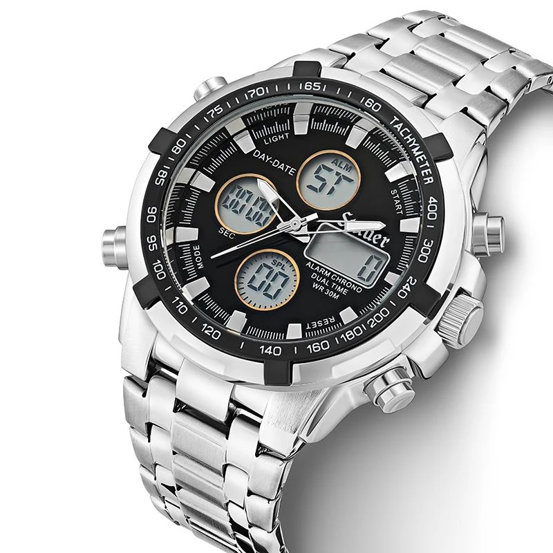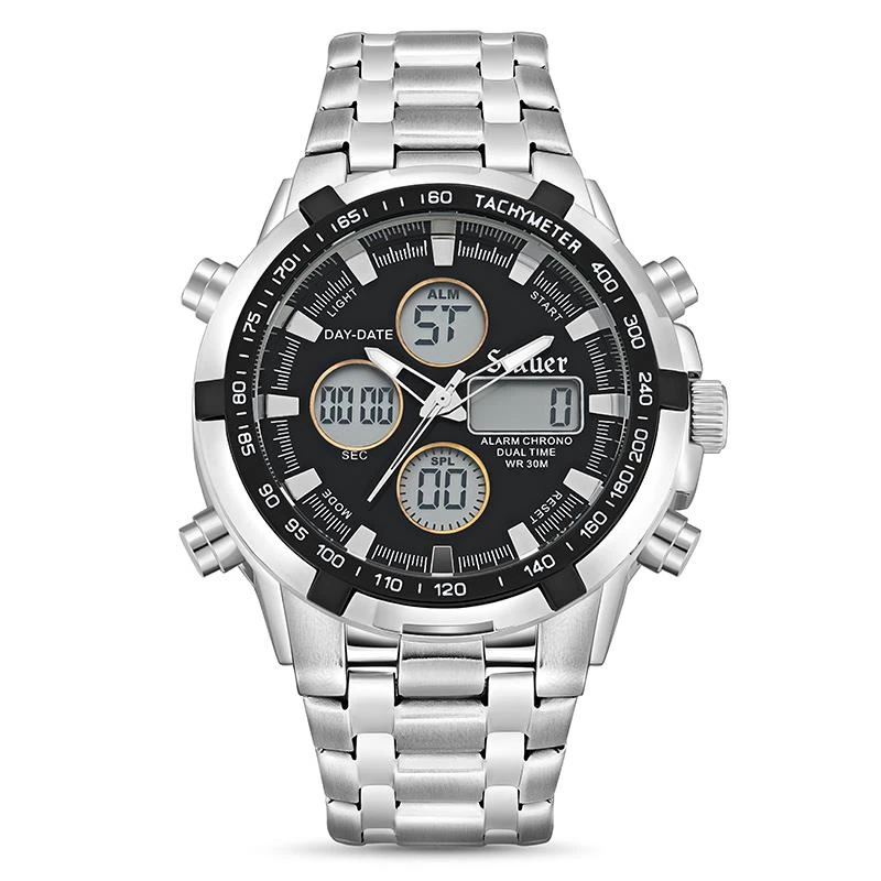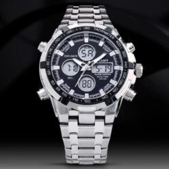 Let me introduce you to the Stauer Adventurer, a watch packed to the gills with complications. It has both analog and digital chronograph movements. It has digital day, date, time, and second displays. It features a backlight, alarm and stopwatch. Its deployment clasp means you can put it on in a snap, and with its stainless-steel construction and 3ATM water resistance, it’s an essential tool for any explorer. Don’t settle for an average watch. Strike gold with the Stauer Adventurer