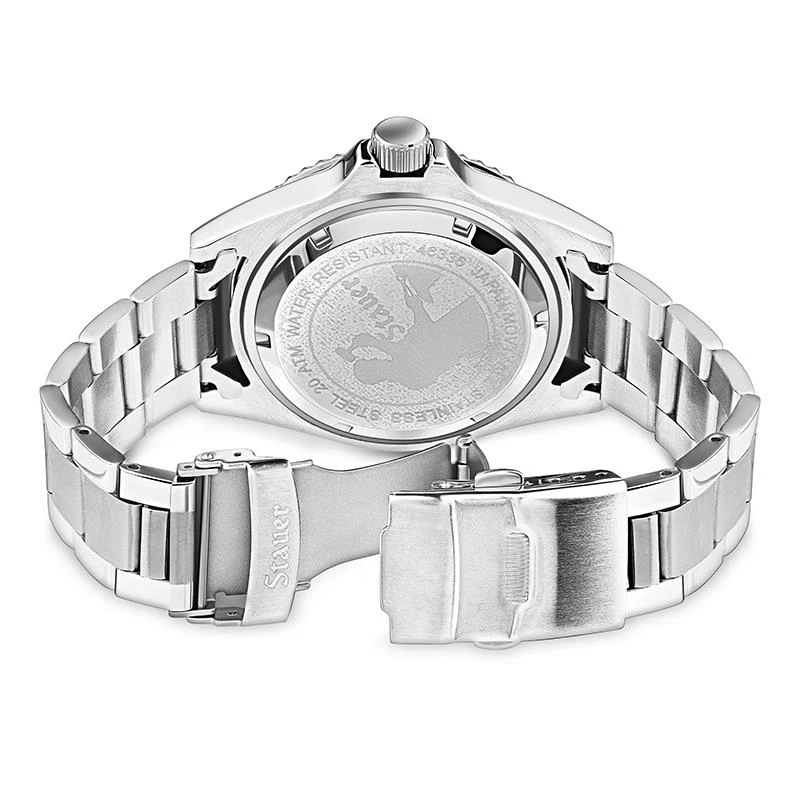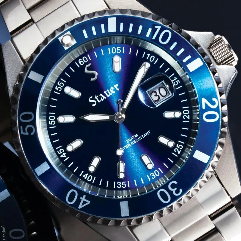 At home exploring coral reefs or investigating the rum options at a beachside bar, this watch is the perfect companion in any locale. With a case, band and crown of stainless steel, this watch is built to last, and its water resistance rating of 20 ATM means it can handle most of your aquatic adventures.