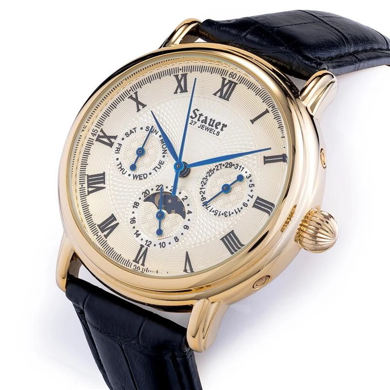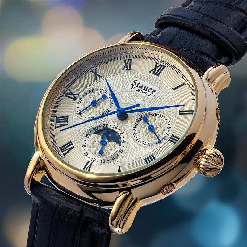 The Stauer Magnificat II brings the impeccable quality and engineering once found only in the collections of the idle rich. If you have actually earned your living through intelligence, hard work, and perseverance, you will now be rewarded with a timepiece with understated class that will always be a symbol of refined taste. The striking case compliments an etched ivory-colored dial exquisitely.