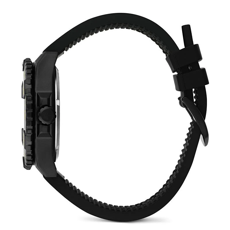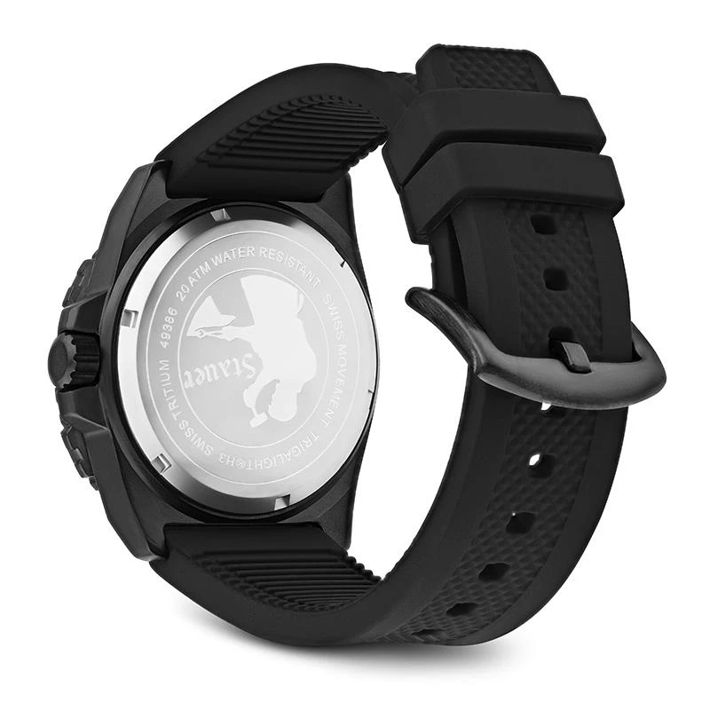 Using GTLS, a unique, highly specialized technology that uses a combination of tritium and phosphors to create a visible light, you can always tell the time, even in the darkest of nights. Up to 100 times brighter than any comparable technology, GTLS is self-powered and lasts for decades. Water resistant up to 200 meters, the Operative has precision Swiss movement, stainless steel construction and a durable rubber black band. Frankly speaking, it’s as rough and tumble as they come.Â