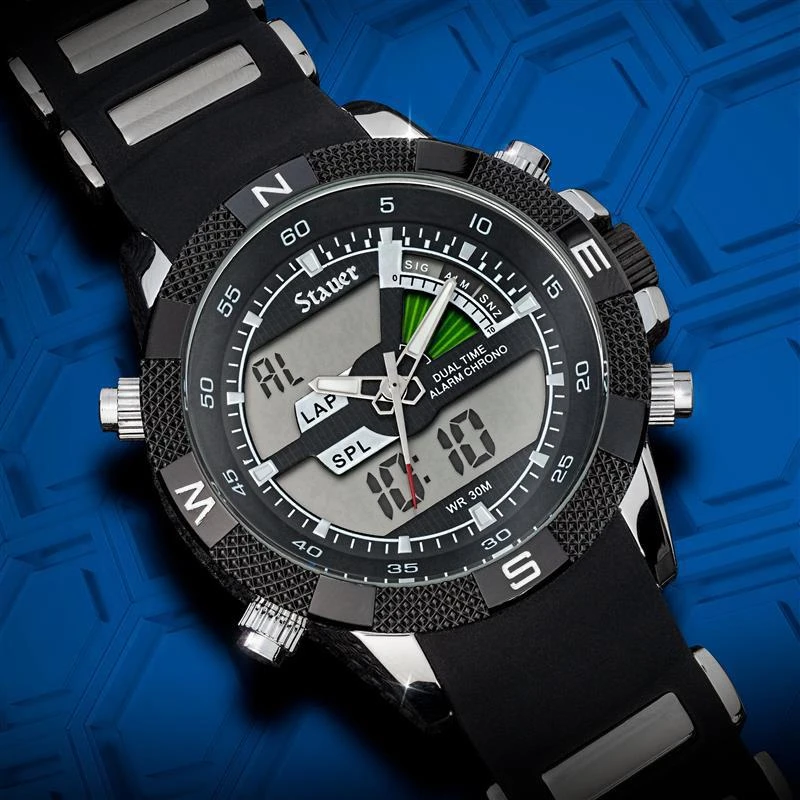 Introducing the Stauer Sports Hybrid ” a watch that’s mastered durability, functionality AND style. A shockproof fusion of stainless steel and silicone, this watch is as durable (and comfortable) as they come. Not to mention, just downright good looking.
