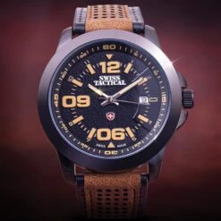 Swiss made and inspired by the military’s rugged utility watches, the Stauer Swiss Tactical is rough, ready, and just begging for action. It’s a breeze to read with large quarter hour markers. And, with a sturdy black case and durable leather band, the Stauer Swiss Tactical is ready for whatever adventure comes your way, for a price that’s hard to beat.Â