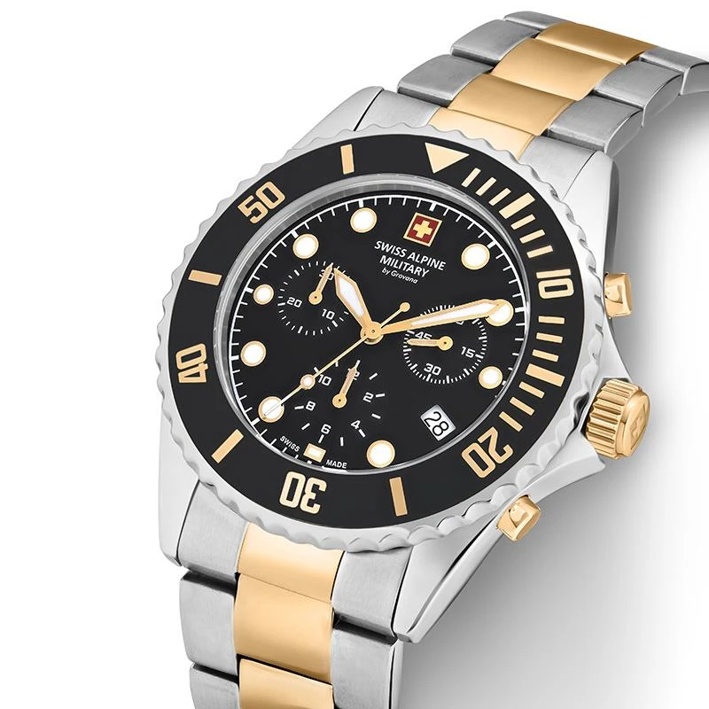 Out on the double black diamond slope, Matt ate it first. Steve put up a good fight, but fell halfway down the run. As the lone man left standing, I coasted to victory and claimed my reward. Now my bounty can be yours. The Black Diamond Swiss Chronograph is the elegant, sporty watch of a gentleman. Carry a Swiss-made watch on your wrist at all times with the Black Diamond Swiss Chronograph.