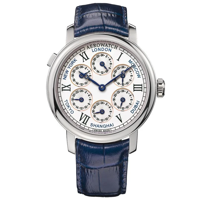 This watch is a mechanical timekeeping wizard, delivering a refreshing alternative to the commonplace GMTs and Worldtimers. In addition to showing the local time, the Swiss-made 7 Time Zones also displays the time in six of the world’s major cities.Â