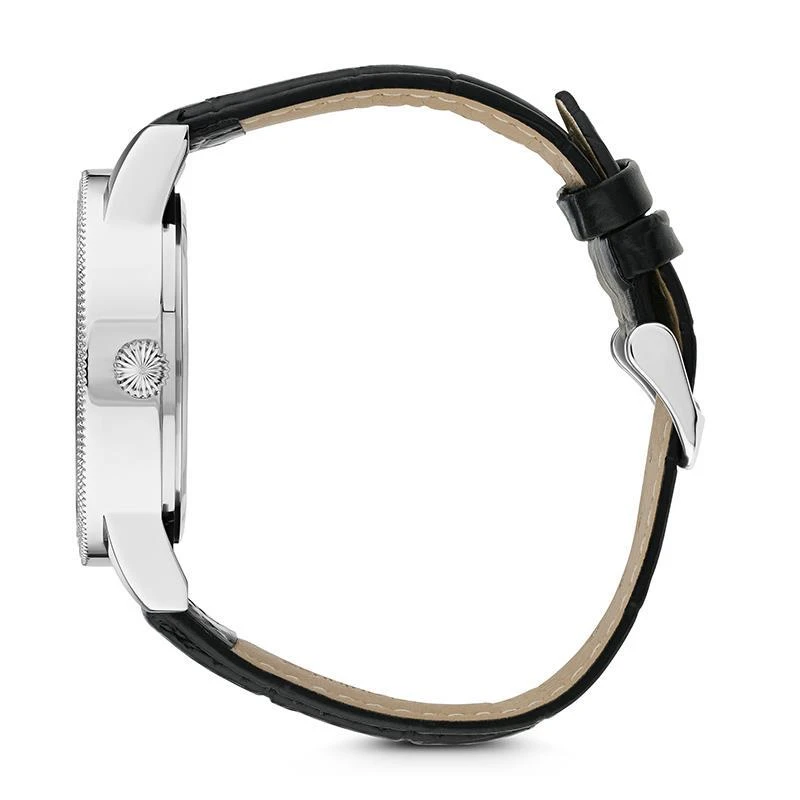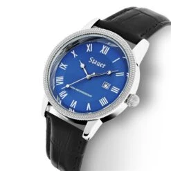 It’s everything a top quality watch should be: Sturdy with genuine leather construction. Precision timing. Durable CotswoldTMÂ Crystal. And, good looking –Â with simple, clean lines and a striking metallic blue face.